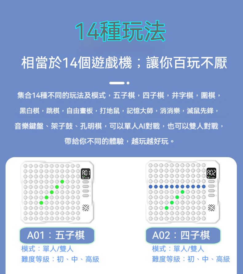 AI對戰有三個超級挑戰難度:初級、中級、高級,輕鬆讓孩子逐步進階,玩得越久,越能見證孩子的成長!
