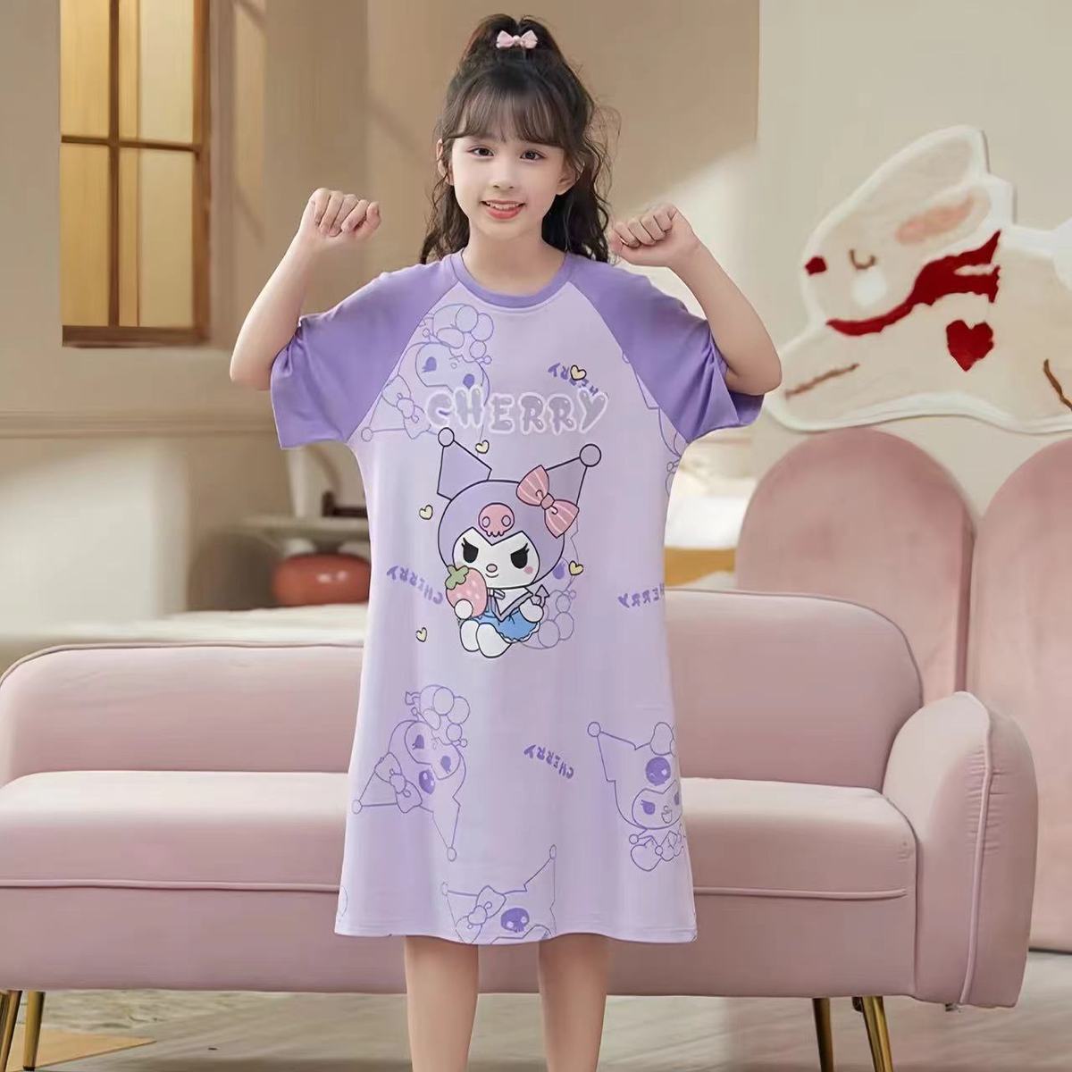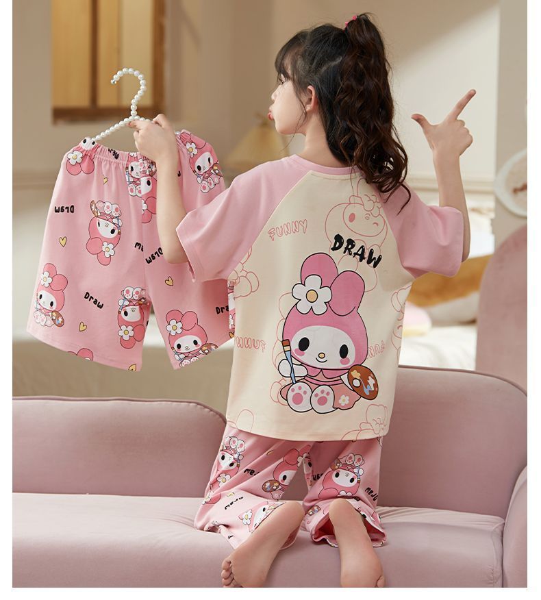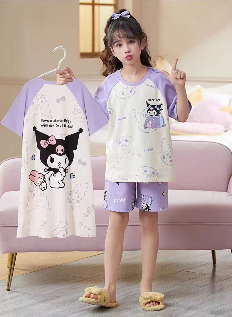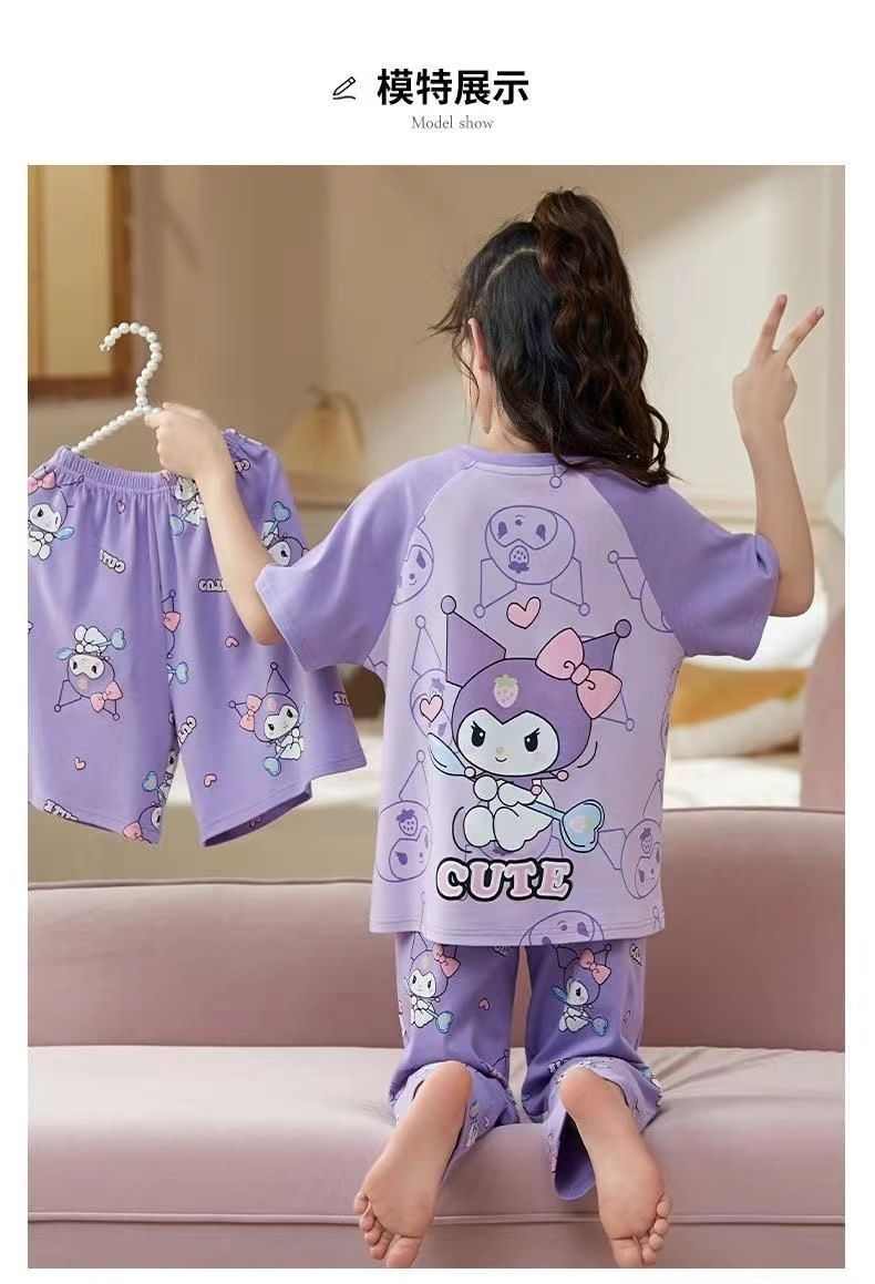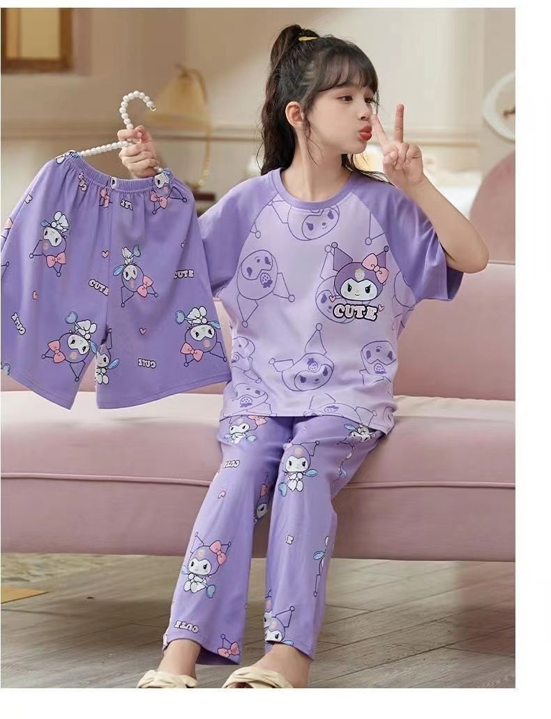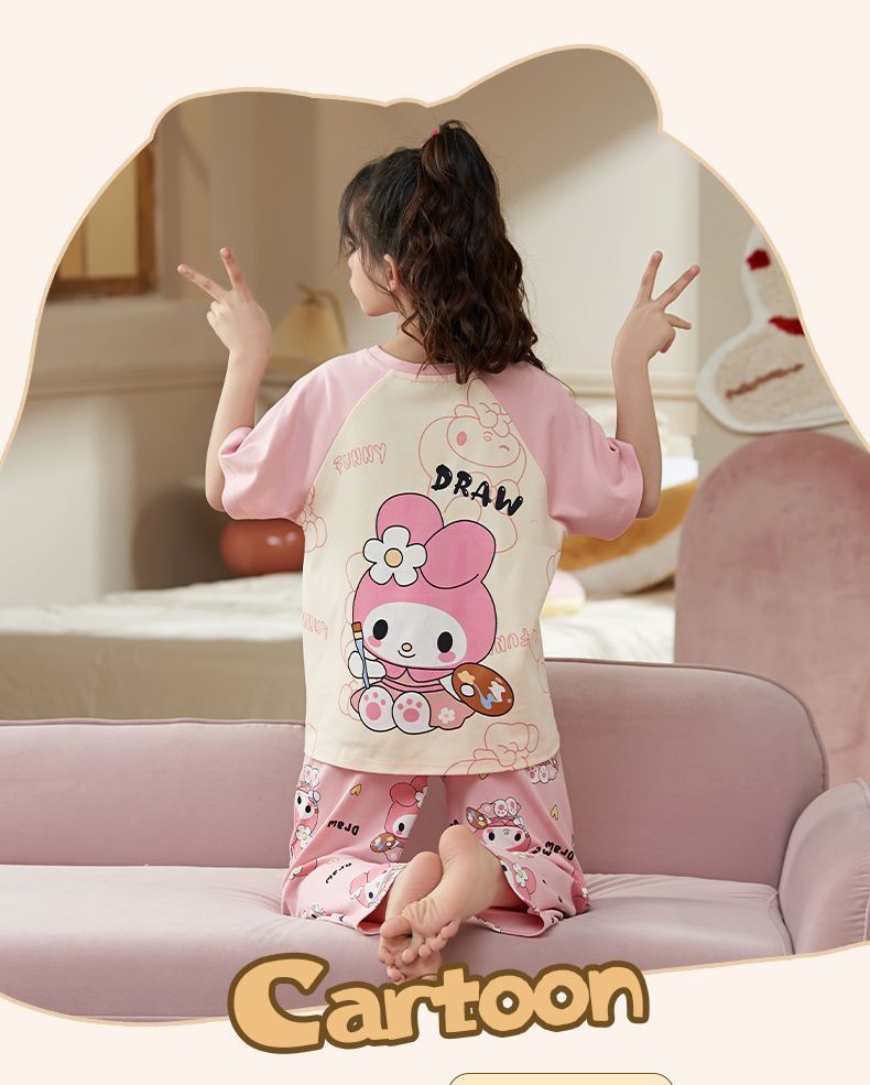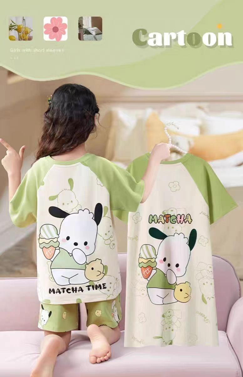 第 2 件 : 2025年新款兒童卡通短袖+短褲+長褲+睡裙超值四件家居服