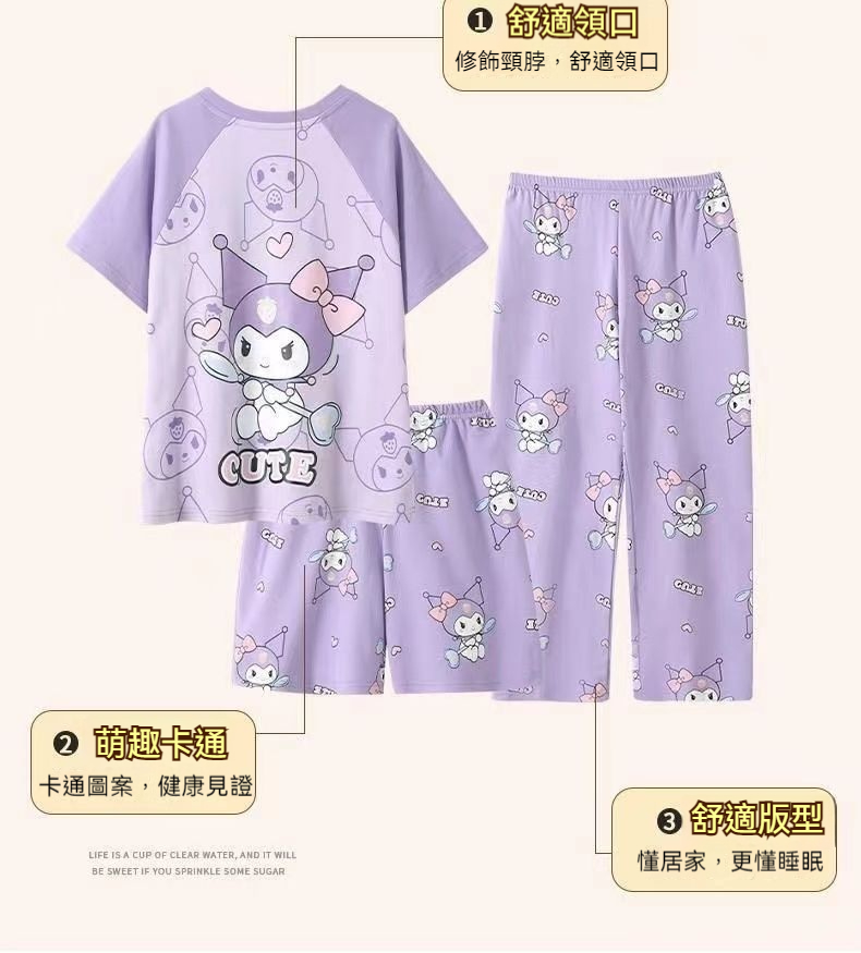 第 1 件 : 2025年新款兒童卡通短袖+短褲+長褲+睡裙超值四件家居服