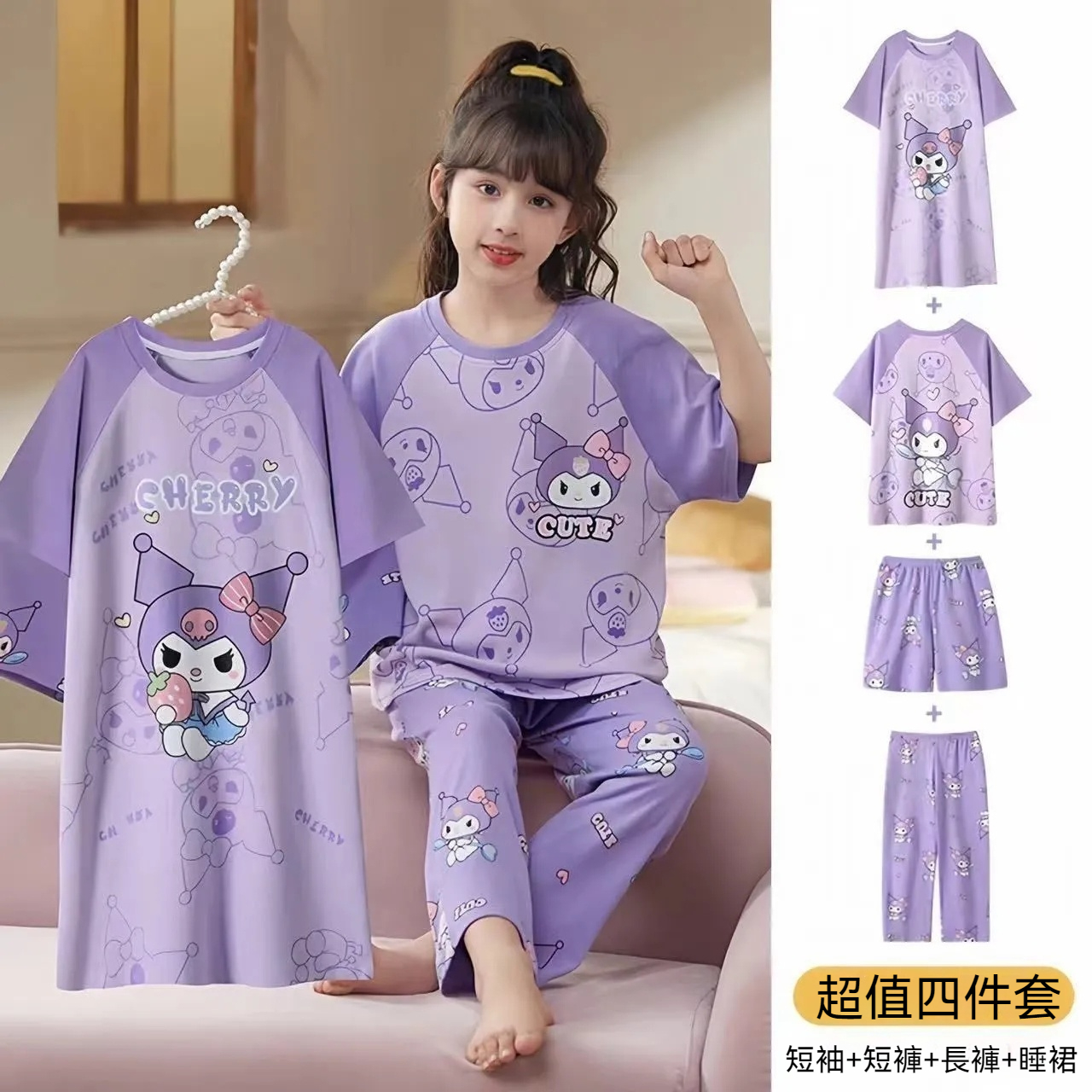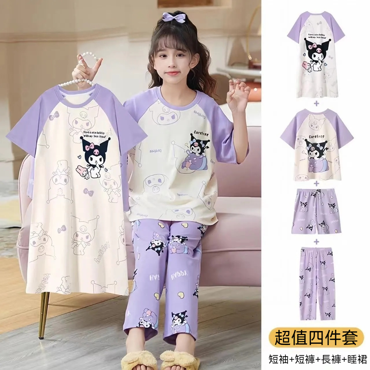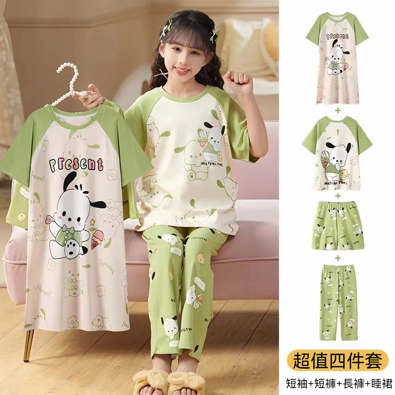 2025年新款兒童卡通短袖+短褲+長褲+睡裙超值四件家居服
