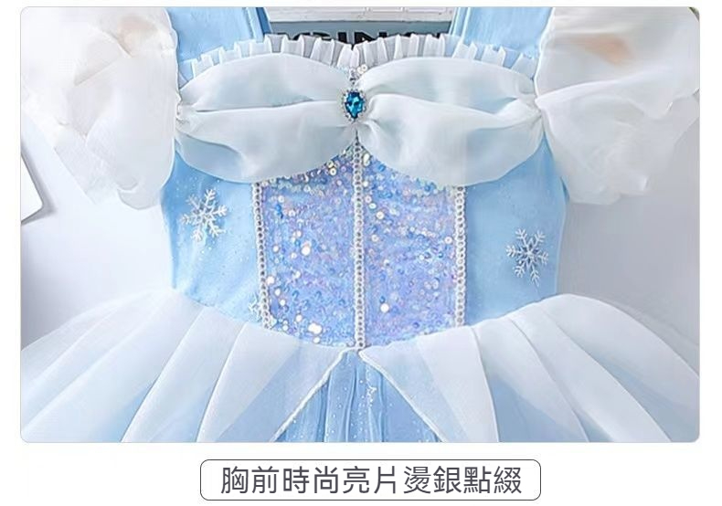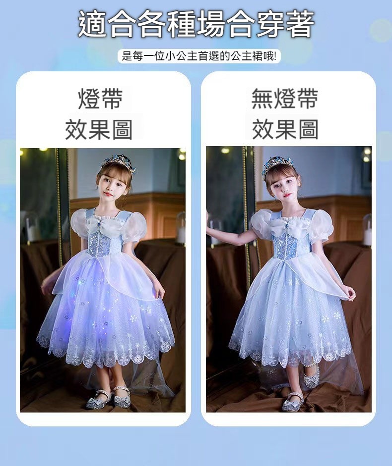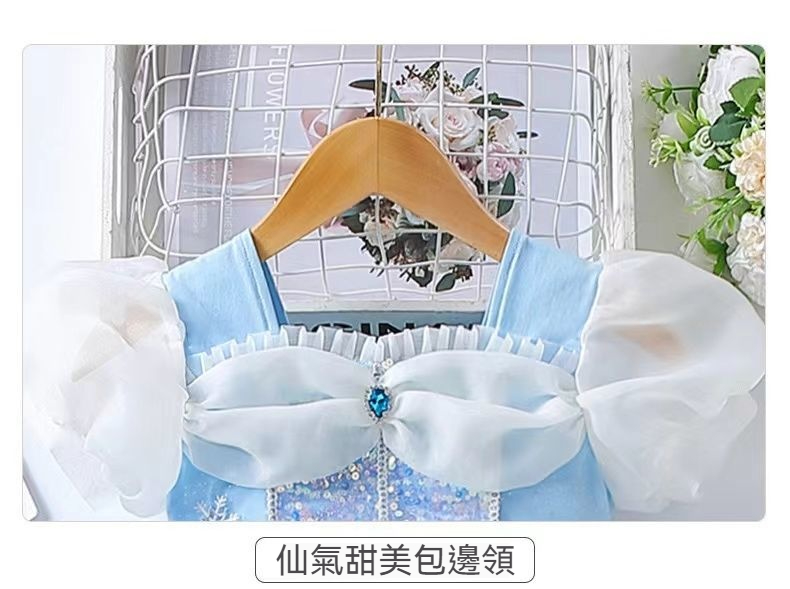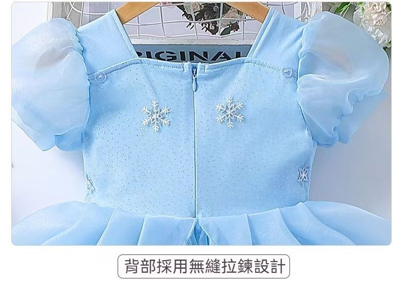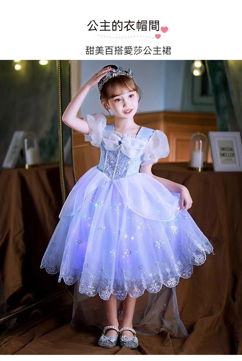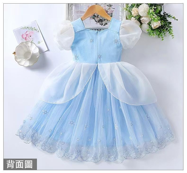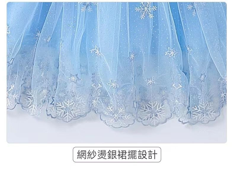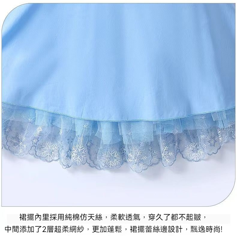 女童夏季短袖雪花繡花公主裙+皇冠魔法棒+彩色燈帶,生日派對連衣裙【免費贈送項鏈+額鏈套裝】 NT$ 1299